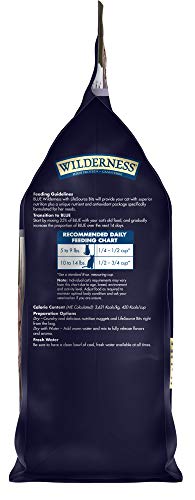 - Contains one (1) 5-lb bag of BLUE Wilderness High Protein, Natural Mature Dry Cat Food, Chicken