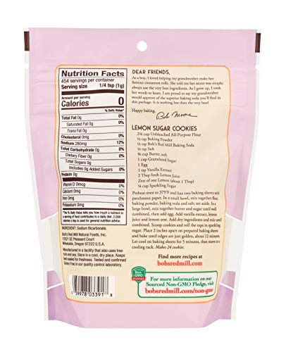 Details: Bob’s Red Mill Baking Soda is made from the deposits of mineralized sodium bicarbonate. It is extracted by a simple water process that uses no chemicals. When used in combination with acidic ingredients such as buttermilk or molasses, it releases carbon dioxide that causes the batter or dough to rise. It’s also a great household cleanser and odor absorber.