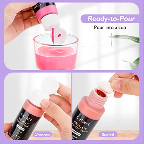Caliart Metallic Acrylic Paint Set with 12 Brushes, 24 Colors (59ml, 2oz) Art Craft Paints for Artists Students Kids Beginners, Halloween Decorations Canvas Ceramic Wood Rock Painting Art Supplies Kit