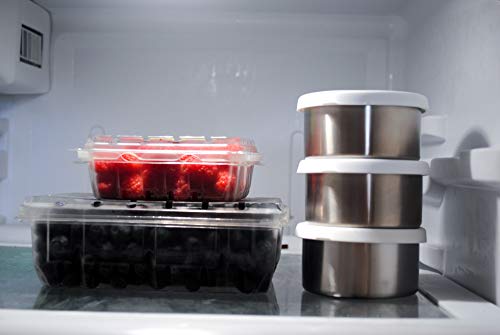 - 7 OZ EACH CONTAINER- Set Of 3 Stainless Steel Lunch Containers, Also Suitable For Baby Jars, Perfect Size For Small Meals On The Go Take Your Food For Picnic, Gym, Work & More! To Go Toddlers Lunch, Fit on Bento Lunch Boxes, Metal Lunch Containers, Also a Snack Containers For Kids & Adults.