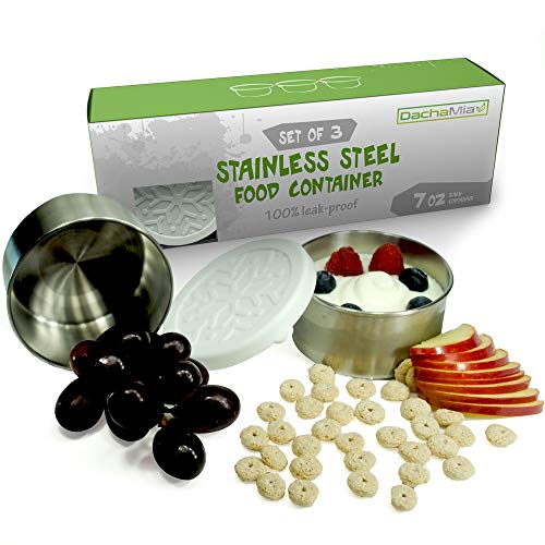 - PREMIUM QUALITY DOESN’T CORRODE – Dacha Mia Durable Storage Food Containers, Leak Proof Condiment Containers, Are Perfect For Toddlers Snack To Go, Kids Love To Finger eat Their Fruits and Vegetables, Dacha Mia Containers Are Suitable For Any Sauces, dressing, Yogurt, Cereals, Chopped Fruits & More, Mess Free, A Perfect Solution For Your Kitchen .