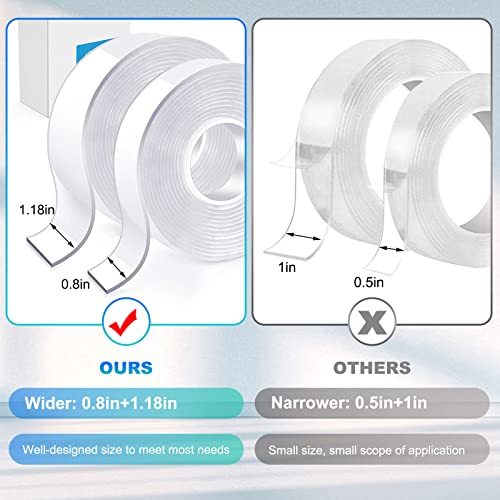 Double Sided Mounting Adhesive Tape (Pack of 2,Total 19.7FT),Double-Sided Tape Adhesive Tape Heavy Duty Tape with Two Widths