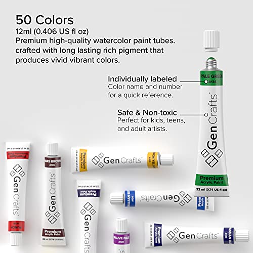 GenCrafts Acrylic Paint – Set of 50 Premium Vibrant Colors – (22 ml, 0.74 oz.) – Quality Non Toxic Pigment Paints for Canvas, Fabric, Wood, Crafts, and More