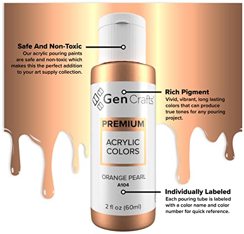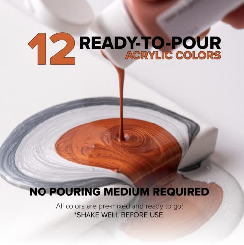 GenCrafts Metallic Acrylic Pouring Paint – Set of 12 Metallic Colors – Pre-Mixed High Flow & Ready to Pour – 2 oz./ 59 ml Bottles – Multi-Purpose Paints for Canvas & Paper, Rocks, Wood and More