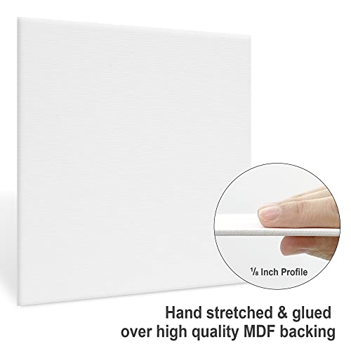 - READY TO USE – Pre-primed with 8 Oz. acid-free gesso, this art canvas set come ready-to-paint right out of the box. No preps needed. Warm tips: Canvas Panels are NOT designed for Acrylic Pouring because of the amount of paint that is required. Recommended to use for acrylic, oil, watercolor, tempera or any practicing techniques.