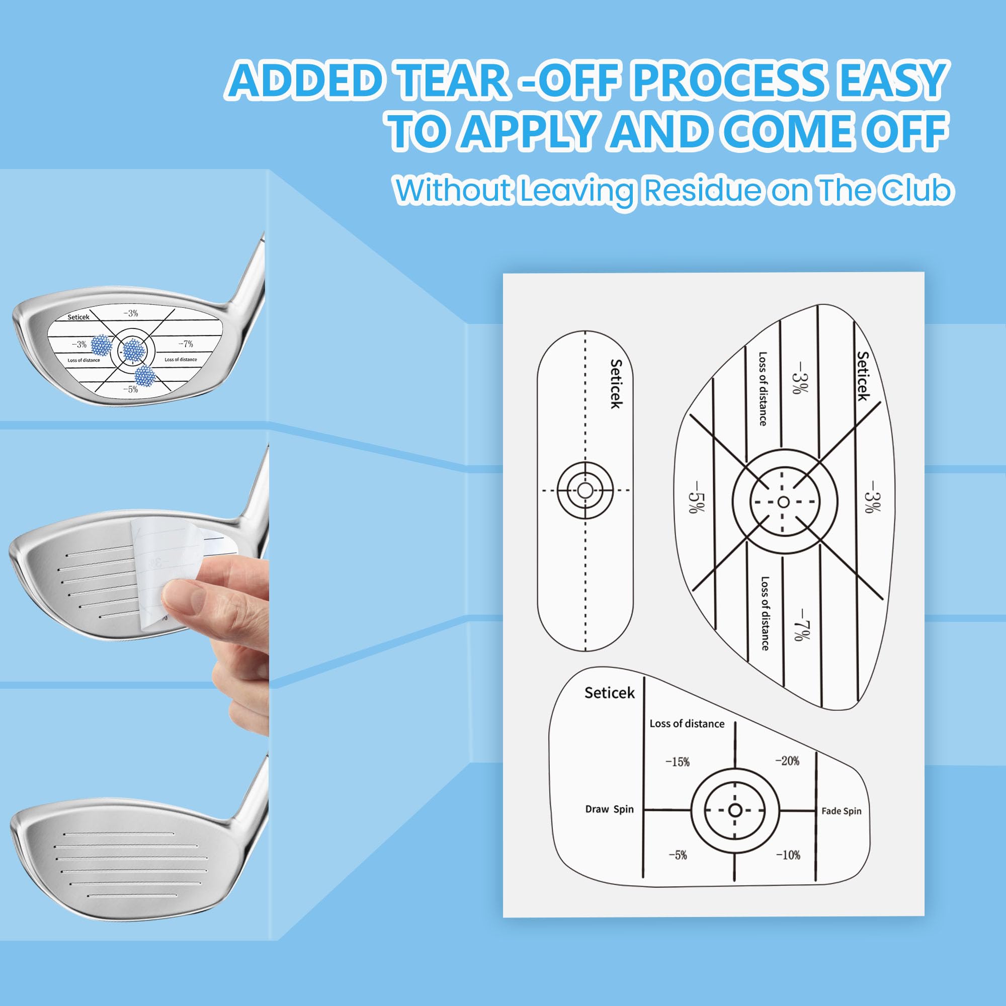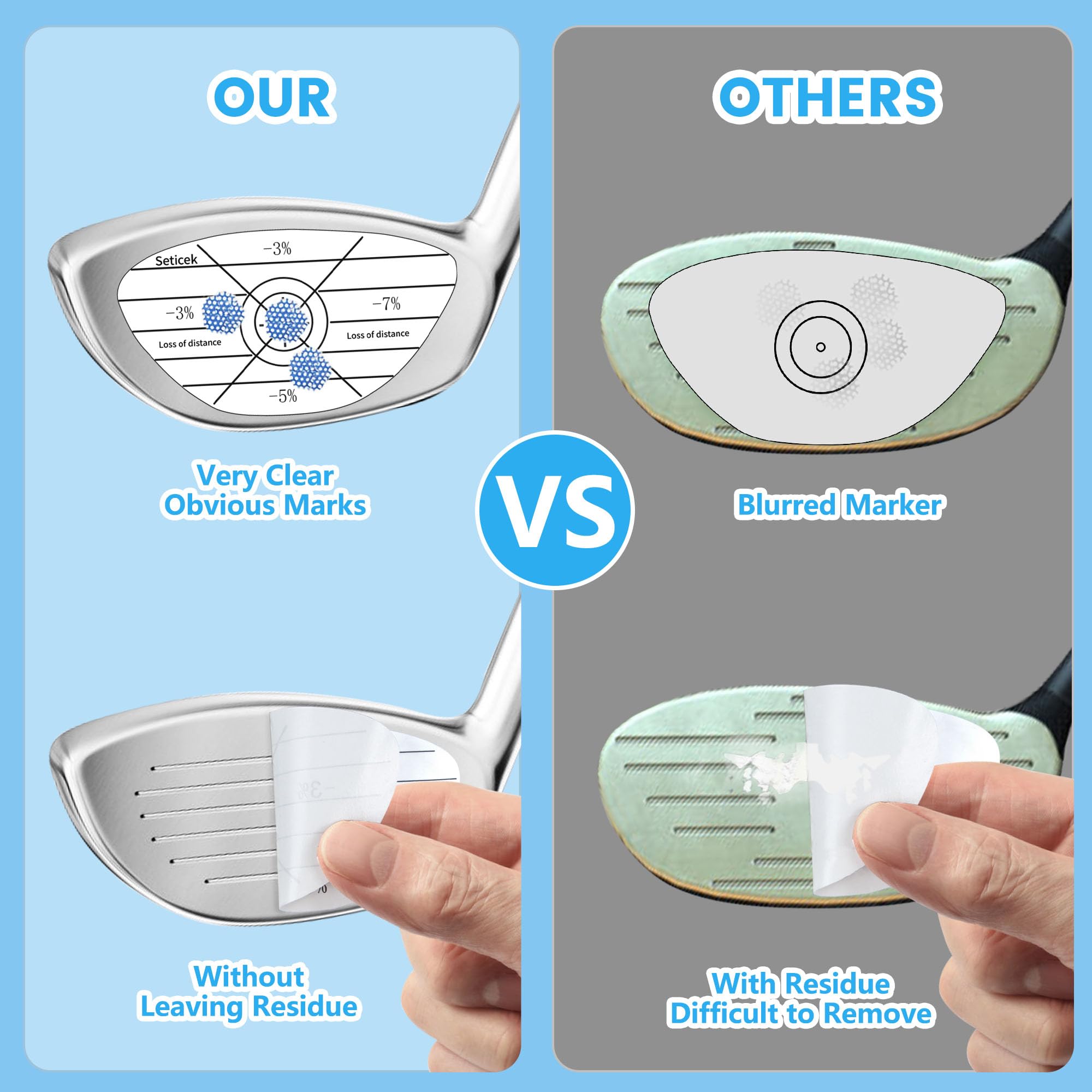 - 【Easy To Apply and Remove】We use tear-resistant material and high-quality Removable adhesive in this golf club sticker. Can be easily attached to the club face and does not tear when removed, will not leave adhesive marks that damage your clubs.