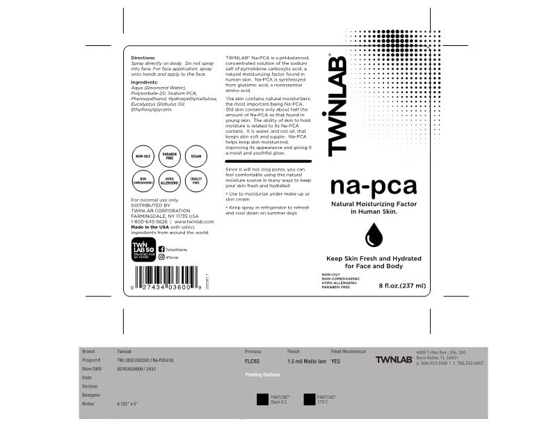 - Instant moisture boost: Get a dewy glow in seconds by misting with Twinlab NaPCA face lotion for women. Na-PCA is a natural component of skin that is quickly absorbed, leaving skin hydrated without feeling greasy. Our Na-PCA spray is hypoallergenic and non-comedogenic, specifically formulated so that it does not block or clog pores