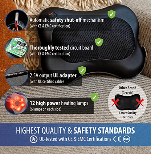 Zyllion Shiatsu Back and Neck Massager – 3D Deep Tissue Kneading Massage Pillow with Heat for Back Pain, Muscle Aches, Chairs and Cars (NOT Cordless) – Black (ZMA-13-BK)